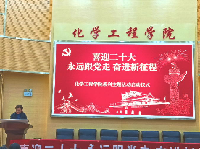 在化工楼100报告厅开展“喜迎二十大永远跟党走奋进新征程”主题教育实践活动启动仪式。