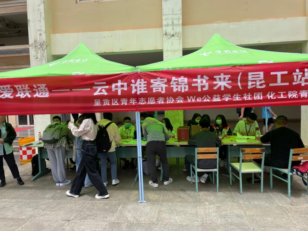 青年志愿者协会、呈贡区青年志愿者协会与昆明理工大学WE公益团队于5月14日在憬园小广场共同举办了“云中谁寄锦书来”温暖寄语活动。昆明理工大学各级在校生共800人参加了此次活动。