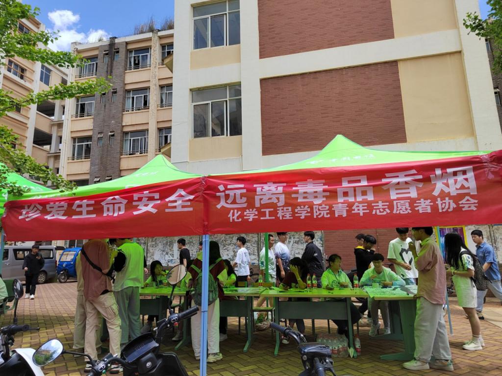 青年志愿者协会于5月28日在憬园小广场举办了以“珍惜生命安全,远离香烟、毒品”为主题的禁毒禁烟活动。昆明理工大学各级在校生共500人参加了此次活动。
