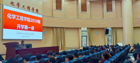 2019级在化工楼100报告厅开展了主题为“开学第一课”的年级大会,2019级全体生到场参会。本次大会由2019级辅导员袁敬老师主持。