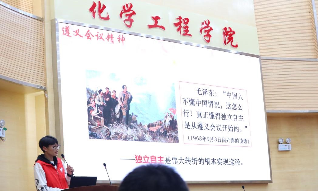邀请机电工程学院宣讲团在化工楼100开展遵义会议精神志愿宣讲活动,化工学院青卓班全体成员、入团发展对象、学生会与青年志愿者协会成员、研究生会成员参与了此次活动。
