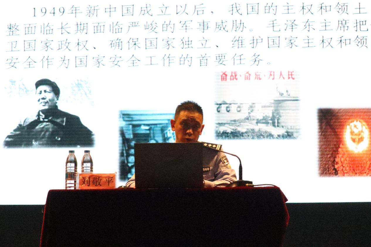 与信息与自动化学院在红土会堂联合举办了国家安全专题讲座。本次讲座由云南省公安厅刘敬平警官担任主讲人,化工院与信自院师生1000余人参与了讲座。