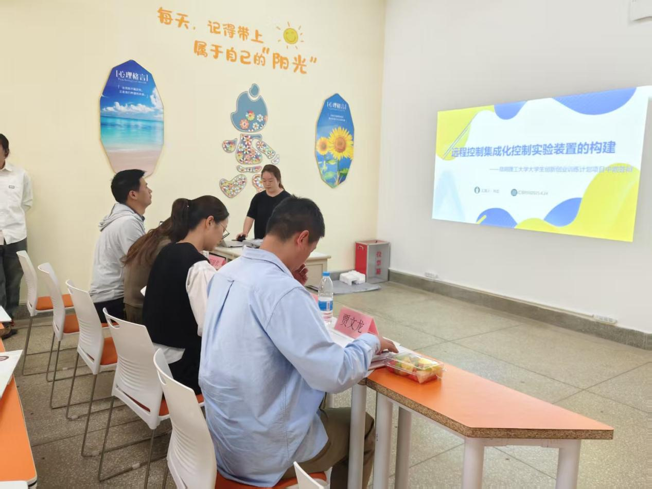 在中期检查环节,贾文龙、史昌蓉等 4 位评委对 13 个项目进行评审。各团队通过 5 分钟 PPT 讲演与实物演示,系统汇报研究背景、技术路线、阶段性成果及经费使用情况。评委针对不同的课题,从创新性、可行性、数据支撑度等维度切入,针对实验设计漏洞、理论模型缺陷等提出了改进建议,要求团队强化问题意识,明确下一阶段研究重点。