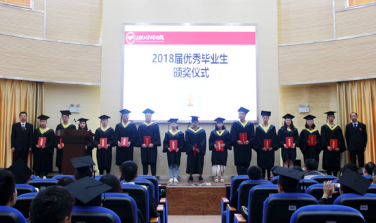 毕业典礼在雄壮的国歌声中拉开帷幕。首先梅毅院长致辞,梅院长在致辞中深切表达对毕业生美好祝愿,同时还对毕业生提出了殷勤期望。随后,齐毅书记宣读2018届省级、校级优秀毕业生表彰决定及名单并为他们颁发证书、李斌副院长宣读2018届优秀毕业生设计(论文)表彰决定及名单并为他们颁发证书,学院党委委员袁敬老师宣读了2018届校友联络员名单并颁发聘书。