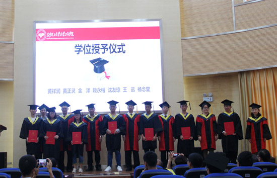 在学位授予仪式上,学院学位评定委员会的七位委员为毕业生们授予学位,向毕业生们致以祝贺和勉励,并与他们握手、合影,也象征着化工学院的毕业生们已经顺利完成本科学业,可以步入社会展翅高飞。