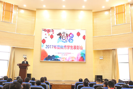 大会伊始,梅毅院长致辞,他首先对学院2017年的发展情况做了报告,对同学们寄予期望。之后由齐毅书记宣读表彰决定,学院秉持公平、公正、公开的原则,对优秀学生进行表彰,希望同学们志存高远、脚踏实地、戒骄戒躁、立志成才。表彰决定宣读完毕后,是院领导为获奖同学颁奖并合影留念。