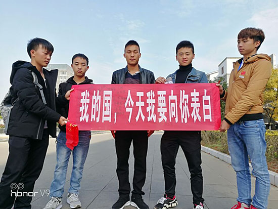 下午13:30,勤助会工作人员分布到了昆明理工大学、云南师范大学、云南大学、云南民族大学的各个角落,对各校师生进行了关于爱国的采访。随风舞动的国旗,佩戴整齐的校徽,让他们成为一道亮丽的风景线。采访正式展开之后,各工作人员用热情驱走寒冷,用微笑感染彼此,用诚恳动人的叙述让被采访师生了解“一二九”运动,牢记“一二九”精神,被采访者认真的用笔在表白纸上写下对祖国母亲最诚挚的爱与祝福,写完之后,他们脸上洋溢着作为国人的骄傲与幸福,并积极与工作人员合影留念,在这个特别的日子里,我们一起对祖国表白,为祖国祝福。