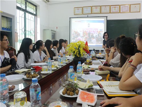 接下来的几天,调研小队参观校园、到图书馆和实训中心体验学习,到排球场参与体育活动,积极参与化工专业英语的课堂讨论,与研究生本科生进行学术交流,讨论学习方法、学习习惯、学习效果等关键性问题,共同演绎联谊晚会,深入文典磷肥公司实习交流,并在食堂和宿舍与河内工业大学的同学们同吃同住。
