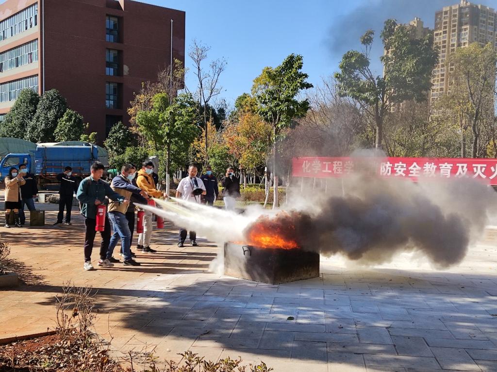 随后,参训人员在化工楼前进行了灭火实训演练,培训教员为师生们讲解和示范了灭火器的使用方法,师生们亲自体验了灭火器的使用及灭火过程。