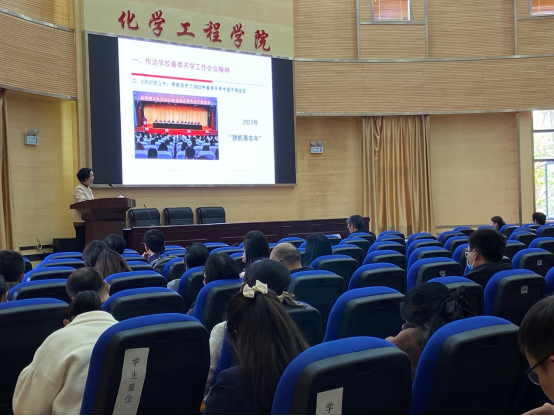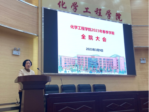 在化工楼100报告厅,召开2023年春季学期全院教职工大会。