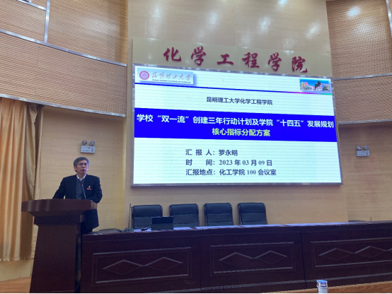 接下来学院三个系相关负责人向全院教职工汇报了各系的工作开展情况。介绍了化学工程与工艺国家一流专业创建情况、存在的问题以及改进措施;汇报了轻化工程国家级一流专业的创建方案与计划措施;对装控省一流专业创建情况、存在的问题和改进措施进行系统分析。