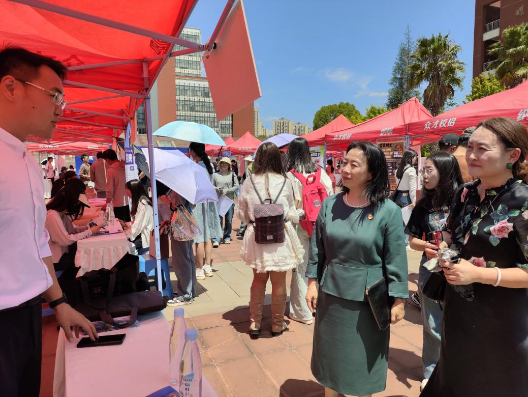 本次双选会实现一站式服务,护航求职全过程。校方为参会企业提供标准化展位、宣传支持及后续笔试面试场地,并通过“云校招”企业服务平台实现线上报名与审批,简化企业参会流程。校企联动、三院协同,合力推进就业。双选会前期,学院通过深入学生宿舍走访、多平台线上推送等多种渠道,进行全方位宣传。活动当天,校领导亲临现场指导,学院党政负责人、就业工作负责人、辅导员和班主任现场进行就业指导,对接企业,为未就业学生精准推荐岗位。