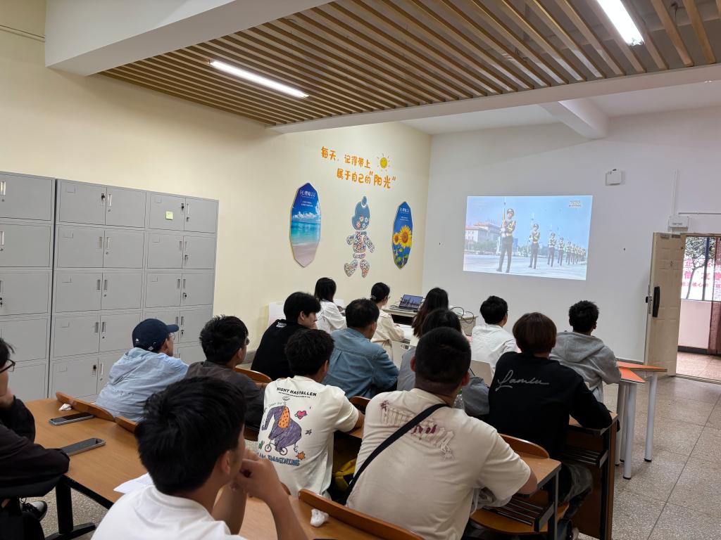 收看过程中,师生们全神贯注,认真聆听习近平总书记的重要讲话,凝心观看阅兵仪式的每一个精彩瞬间。45个受阅方队,在党旗、国旗、军旗的引领下,将铿锵有力的脚步声震彻大地,受阅将士们发出“正义必胜、和平必胜、人民必胜”的时代强音,嘹亮的口号回荡在天安门广场上空时,许多同学眼里闪烁着自豪的光芒;战机编队拖着绚丽的彩烟呼啸而过,在空中组成“80”字样纪念胜利航迹时,不同会场内响起阵阵的赞叹声;地面装备方队依次驶过,展示最新国防科技成果,铁流滚滚、气势如虹,进一步彰显强国强军的崭新风采,也让同学们深切感受到国家实力的日益强大,现场氛围庄严而热烈。